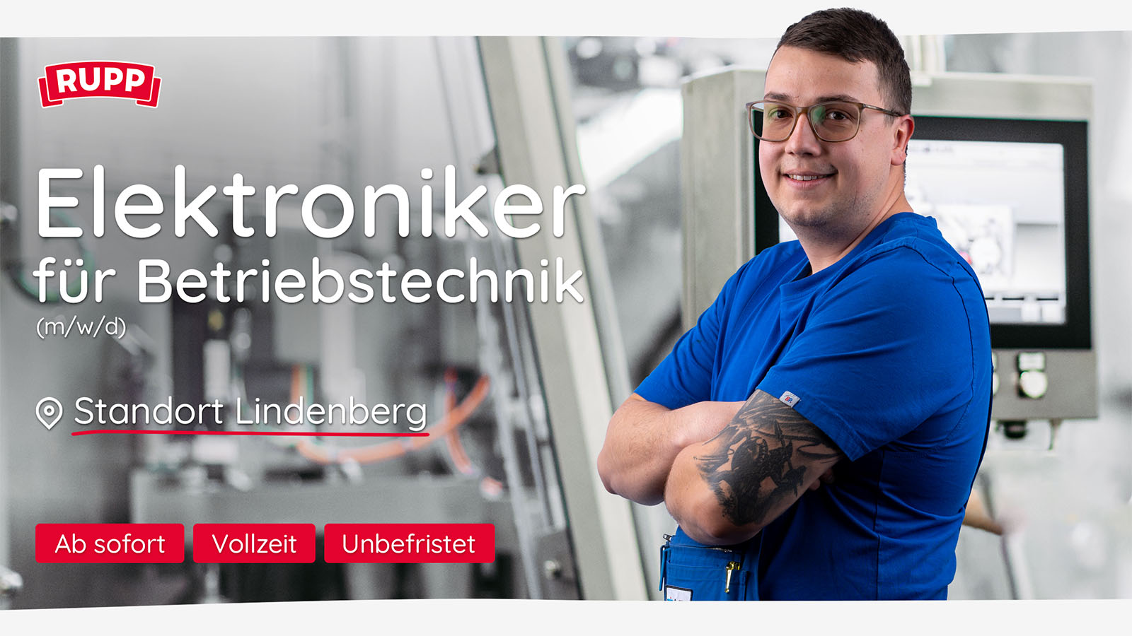 Matthias | Elektroniker für Betriebstechnik „Mein Job als Elektroniker bei Rupp ist sehr abwechslungsreich und vielfältig, jeder Tag ist anders und das macht es besonders.“